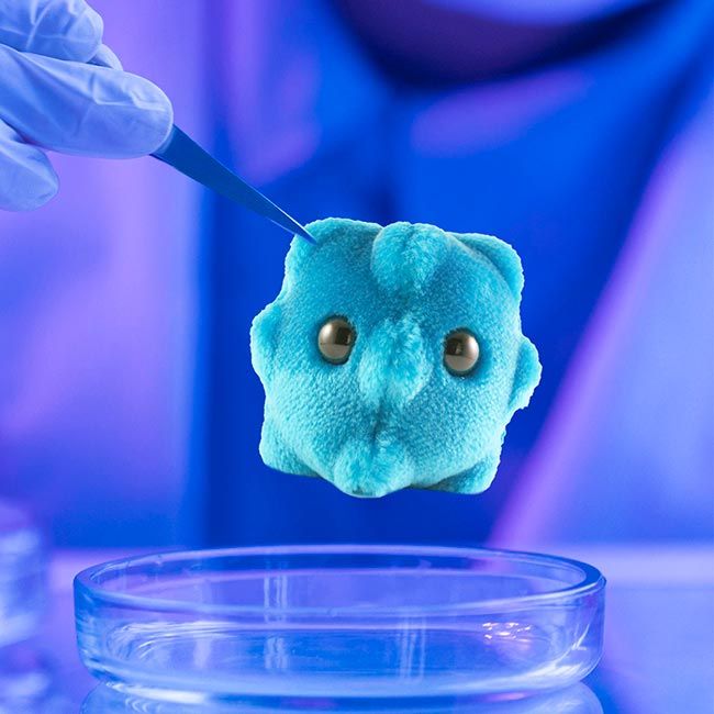 | Packaging | Each plush microbe includes a printed card with fun, educational and fascinating facts about the actual microbe or cell. |