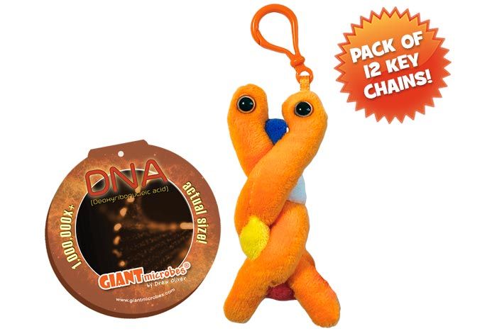 Deoxyribonucleic acid, or DNA, contains the genetic code that describes the physical characteristics of every known life form. Bring the topic of genetics to life with our plush representation of the real DNA double helix structure. This adorable and memorable plush key chain provides a hands-on way to learn about genetics and what DNA is all about.