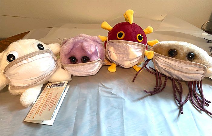 | Packaging | Each plush microbe includes a printed card with fun, educational and fascinating facts about the actual microbe or cell. |
