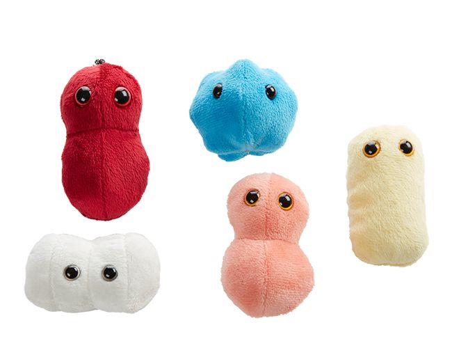 | Packaging | Each plush microbe includes a printed card with fun, educational and fascinating facts about the actual microbe or cell. |