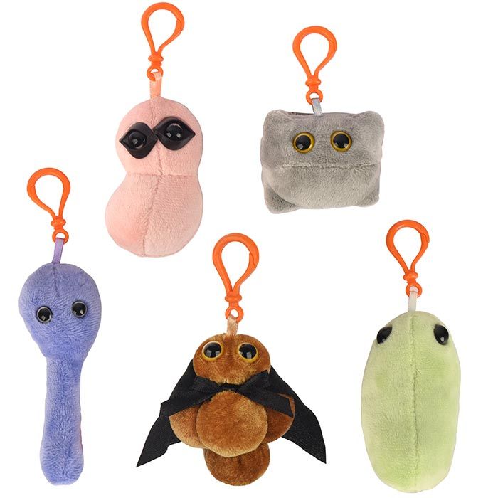 | Sizes | Giantmicrobes are based on actual microbes, cells, organisms and other critters, only 1,000,000 times actual size! Gigantic (GG) 40-60cm XL (XL) 25-38cm Original (PD) 12-20cm Minis (MM) 5-10cm each Keychain (KC) 5-10cm with clip |