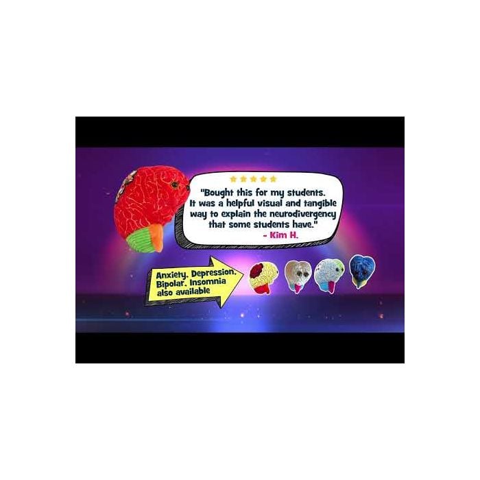 This soft, cuddly representation makes a memorable emotional support and educational gift for loved ones dealing with ADHD. Features a brain with a thought cloud, embroidered details of the cerebrum and cerebellum and includes a printed card with educational facts to help spark discussions.