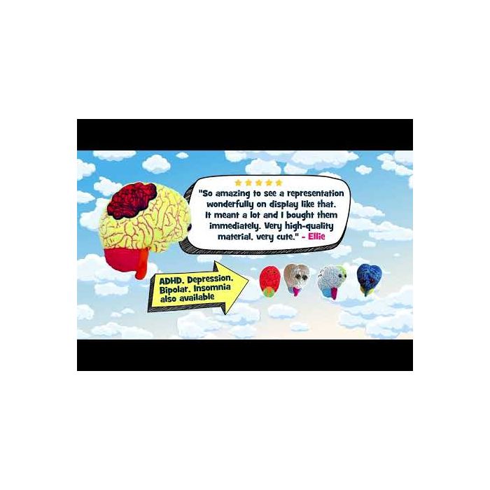 This plush representation features a brain with a thought cloud. For families, teachers, healthcare experts, public health agencies and friends - this is a memorable and useful tool to help educate, spread awareness, and get more people talking about this complicated and vitally important mental health topic.
