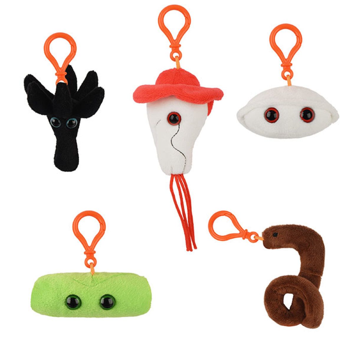 Clip them on your backpack, keys and anywhere you go! Includes 5 microbes. Each microbe measures 3"