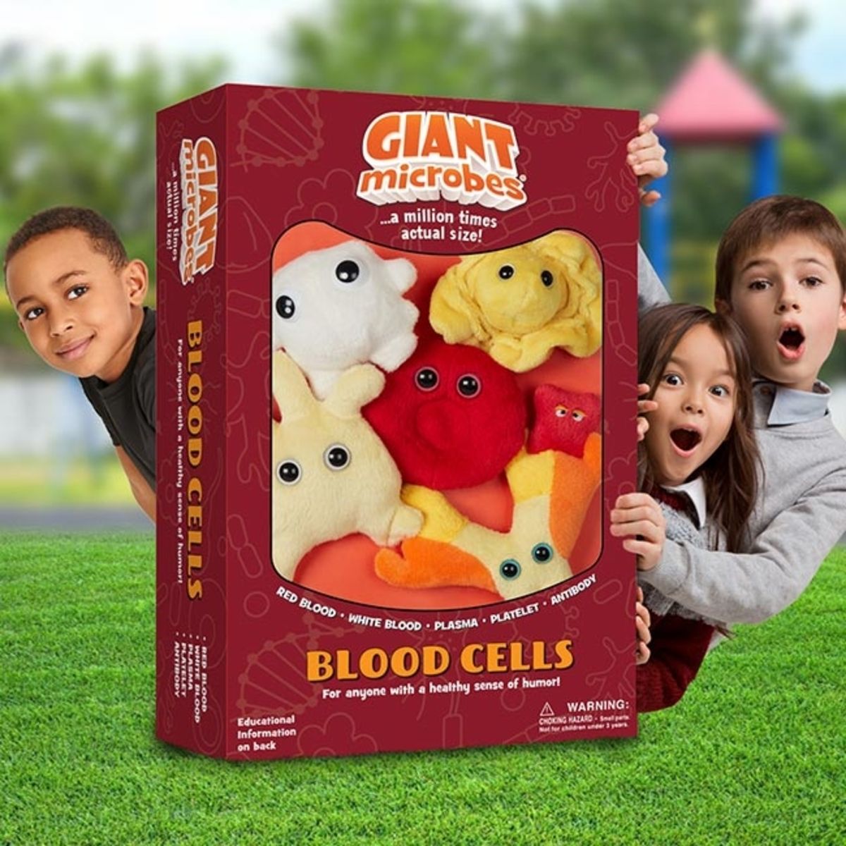 Blood Cells themed gift box includes these mini microbes: Red Blood Cell, White Blood Cell, Plasma, Platelet, and Antibody. Great educational learning tool and get well gift for sick person or science enthusiast.
