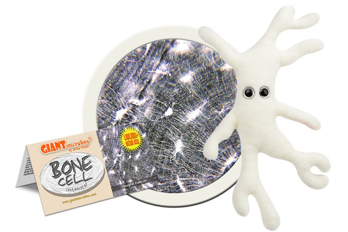 | Description | Osteocytes live in the cavities of the bone and maintain it from within. They secrete chemicals that regulate mineral concentrations and influence surrounding osteoblasts and osteoclasts to remodel bone. Their branched structure contributes to their |