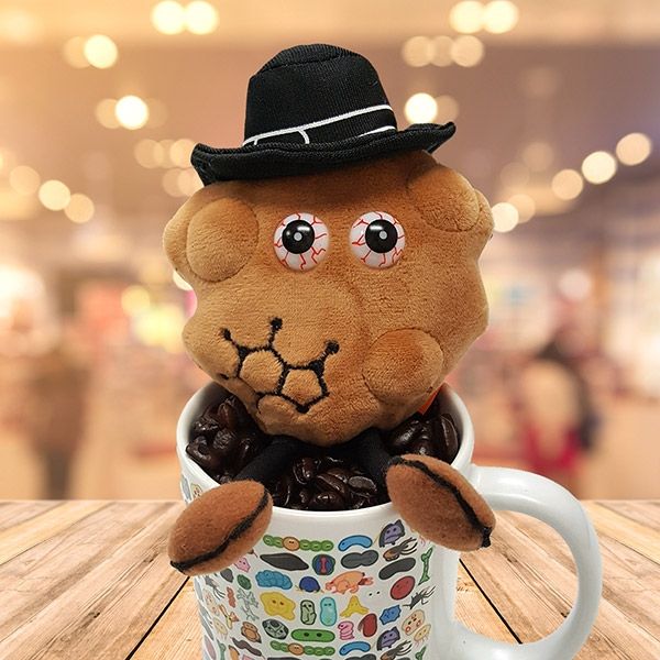 Learn about the science, brain biology and health benefits of Caffeine with GIANTmicrobes addictively fun plush Caffeine! A wonderful gift for friends, family, scientists, healthcare professionals, lovers of coffee, tea, science and health.