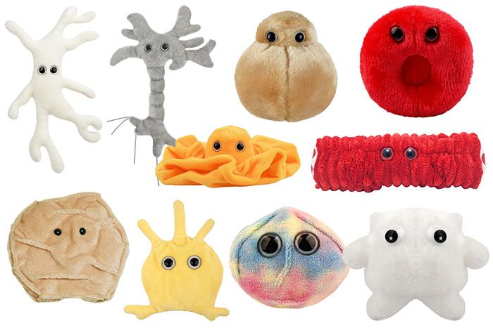 Cells Deluxe 10-pack includes the following Original size (5 - 8") GIANTmicrobes: