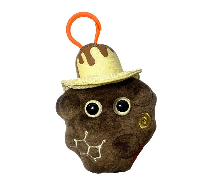 Chocolate mini microbe (3") includes mini-tag and key chain clip.