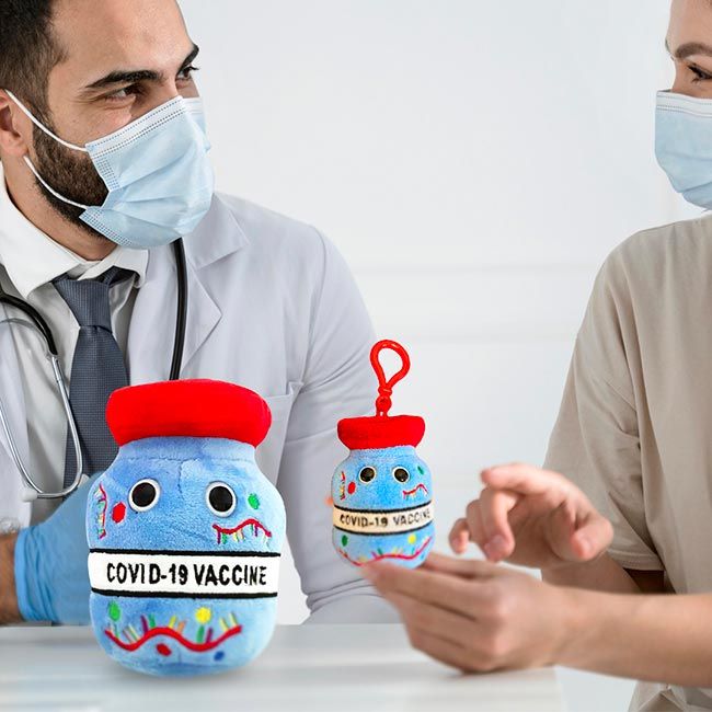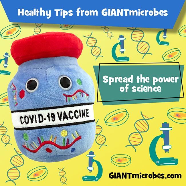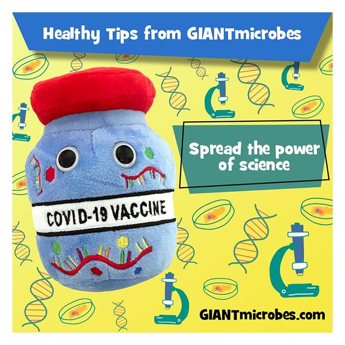 Throughout the Covid-19 pandemic, scientists have been working at a record-breaking pace to develop a vaccine. This usually takes years, even decades. Universities, companies, non-profits and nations have collaborated like never before. Only one year later, vaccines are here. What should you do when a mysterious microbe comes knocking? Stay calm, learn the facts, get vaccinated and enjoy a GIANTmicrobes Covid-19 vaccine!