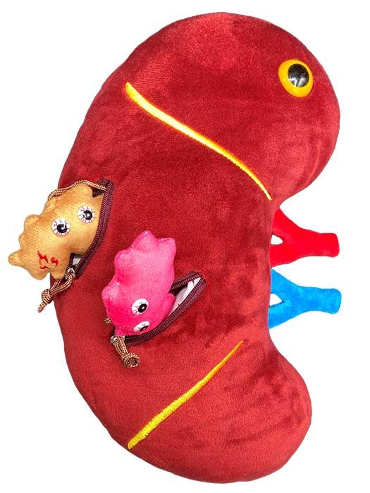 This adorable plush representation of a human kidney provides a fun hands-on-way to learn about your urinary system, anatomy, biology and health. Spread awareness about kidney donations and kidney health with this unique educational product.