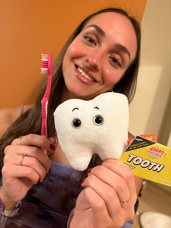 Zippered pocket included! This cuddly tooth has a zippered pocket where your child can put baby teeth for the Tooth Fairy’s visit. Includes an educational card with fun facts about Teeth!