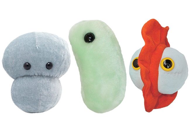 | Packaging | Each plush microbe includes a printed card with fun, educational and fascinating facts about the actual microbe or cell. |