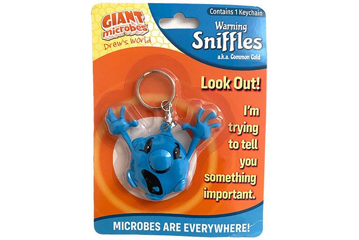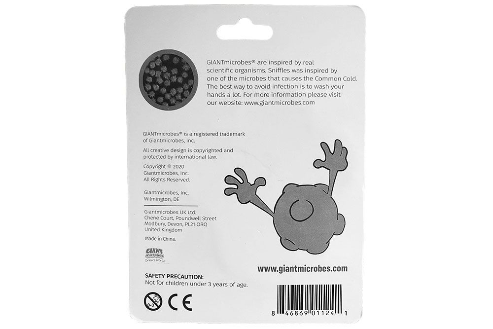 GIANTmicrobes are inspired by real scientific organisms. Sniffles was inspired by one of the microbes that causes the Common Cold. The best way to avoid infection is to wash your hands a lot.