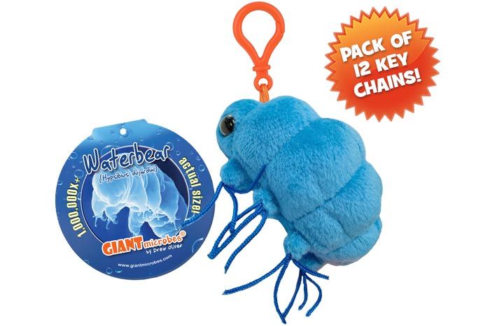 This tiny animal called waterbear, moss piglet or tardigrade, can hibernate for decades before coming back to life. They can even survive in the vacuum of outer space! GIANTmicrobes Waterbear is soft, cuddly and provides a fun hands-on-way to learn about microscopic life, nature and biology.