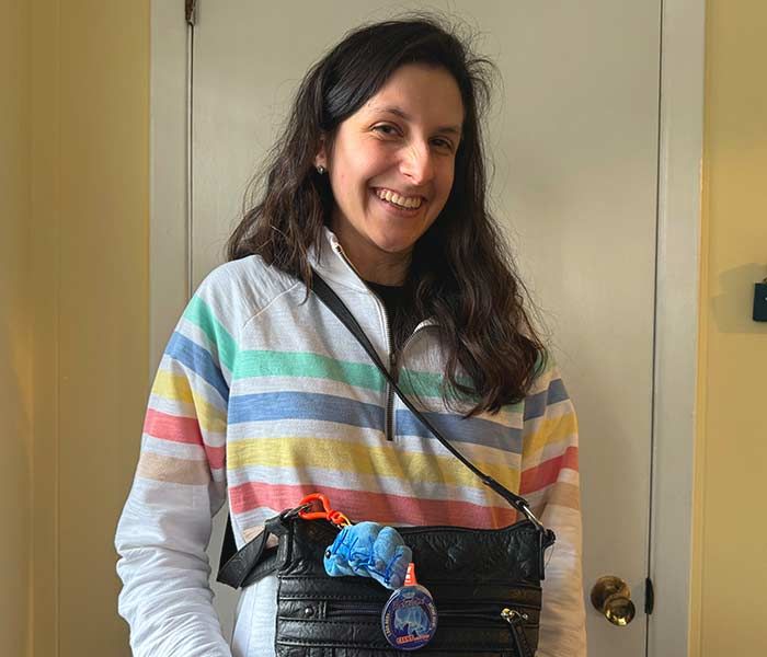 Waterbear mini microbe (3") with mini-tag and key chain clip.